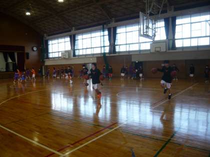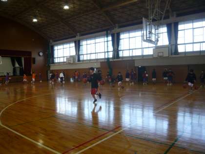 体育館で男子バスケットボール部が練習しています。令和4年の部活動も始まりました。