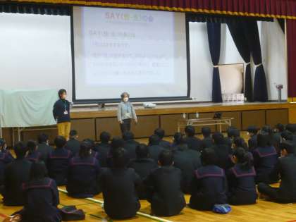 6限、3年生は、大東市人権室のご協力を得て外部講師の先生方をお招きし、「性と生の学習」を行いました。その中で、デートDVを考え、「境界線」を知り、自分も相手も大切にする人間関係を築くこと等、大切なことをたくさん学びました。「私は私、あなたはあなた、誰かのものではない」「いやなときにいやと言える関係」、人間関係を築くうえで、大切にしたいことですね。