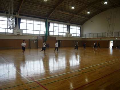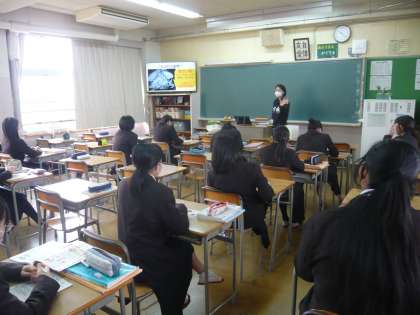 3限、2年3組女子は保健の授業、薬物について学習しています。男子は、体育館で持久走の代わりにシャトルランをしています。