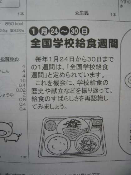 1月24日から30日までの1週間は、全国学校給食週間です。
