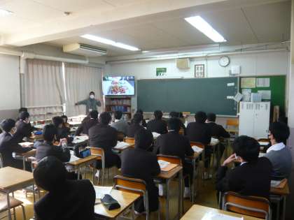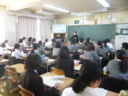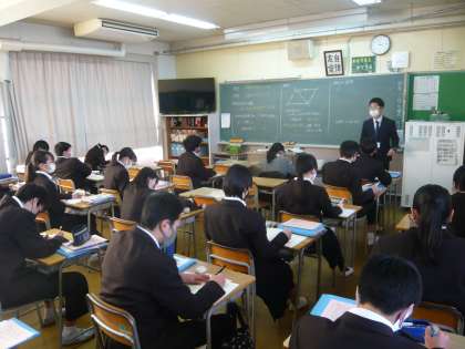 3限、2年1・2組は保健の授業、男子は生活習慣病について、女子は喫煙・飲酒・薬物の危険性について学習しています。2年3組は数学、図形の学習です。