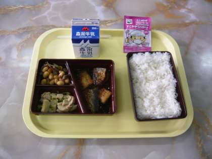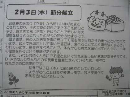 節分献立ということで、いわしのしょうがだれと五目豆がメニューに入っています。