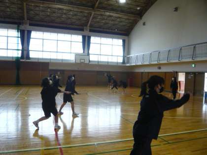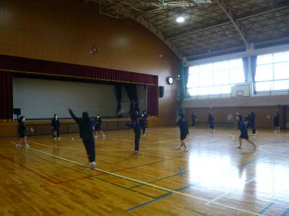 5限、3年3・4組の女子体育は、体育館でバドミントンです。楽しそうです。