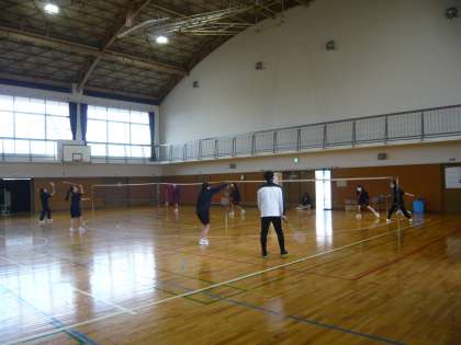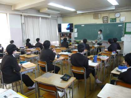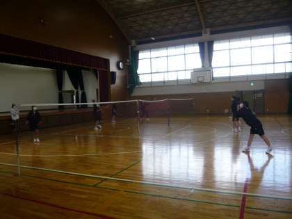 4限、2年3組男子は保健、たばこの害について学んでいます。2年3組女子は体育、体育館でバドミントンの授業です。