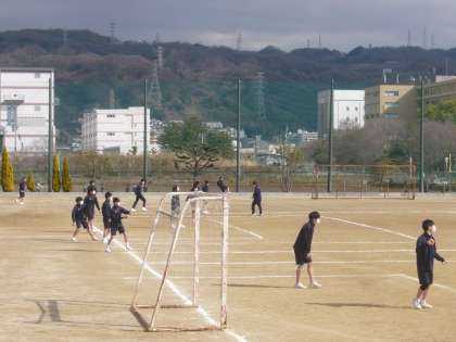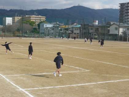 5限、3年生の男子体育は、グラウンドでソフトボール投げをしていました。日差しがあり風もないので、少し暖かく感じられました。