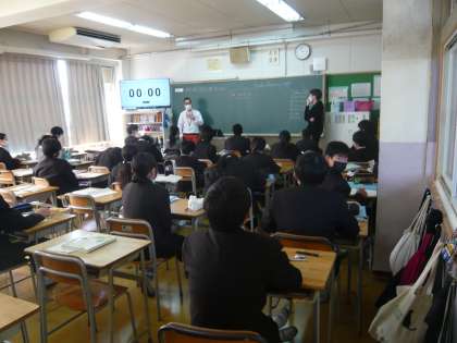 3限、1年生の英語は、AETの先生とティームティーチングで授業をしています。