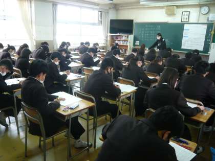 本日は、1年生が実力テストを受けています。1限、国語の様子です。