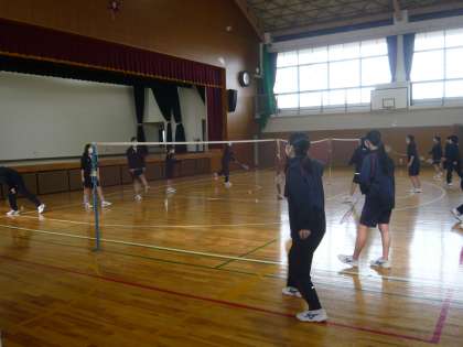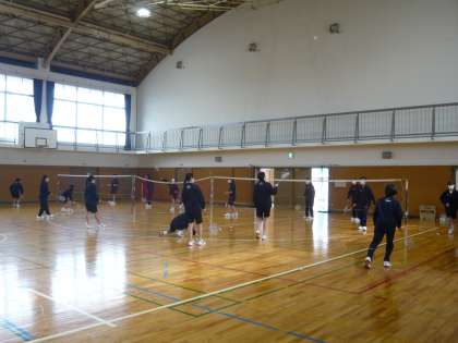 3限、2年1・2組の女子体育は、体育館でバドミントンです。