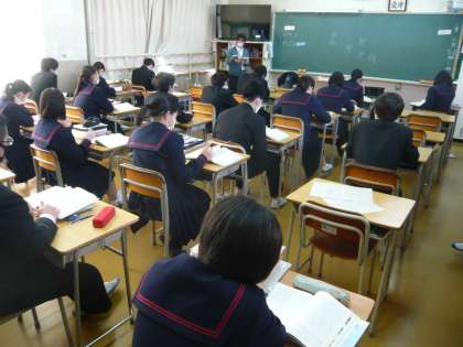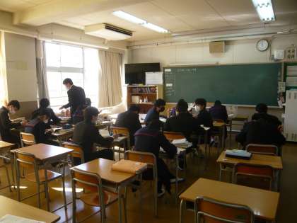 3限、3年1組は数学分割授業、今日は、それぞれの教室で違う課題に取り組んでいました。3年2組は国語、朗読を聴いているところでした。