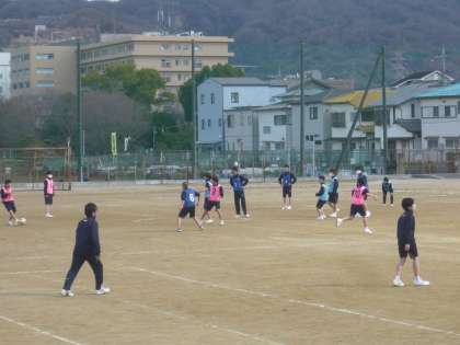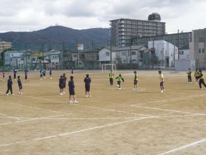 5限、2年1・2組は体育、男子はグラウンドでサッカーです。