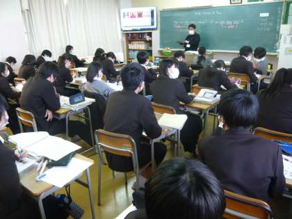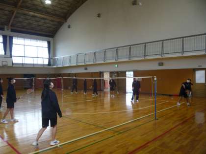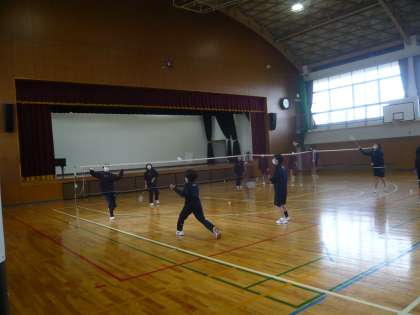 5限、2年1・2組の女子体育は、体育館でバドミントンです。2年3組は英語、日本の伝統文化についての英会話を訳しているようです。