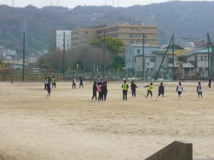 3限、3年3・4組は体育。男子は体育館でドッジボール、女子はグラウンドでサッカーをしていました。