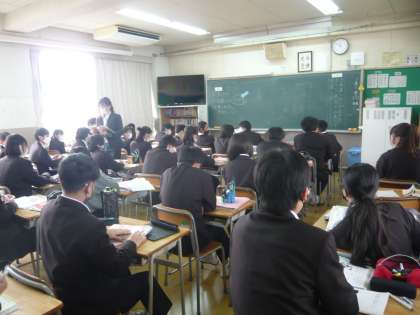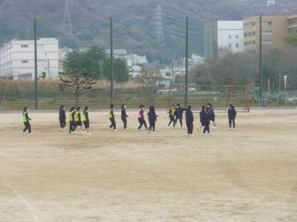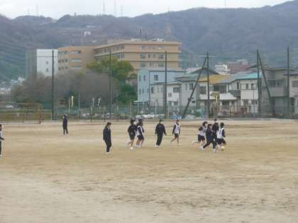 4限、1年1・2組の女子体育は、グラウンドでサッカーです。1年3組は国語、随筆の学習をしています。