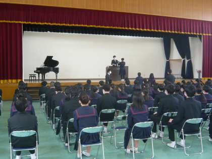 5限、3年生は卒業式の練習を行いました。明日は、いよいよ卒業式予行です。