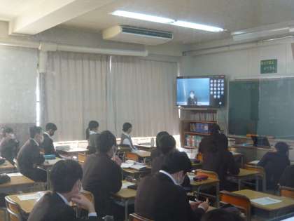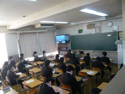 各会からの報告が始まりました。各教室ではこのような形で視聴しています。