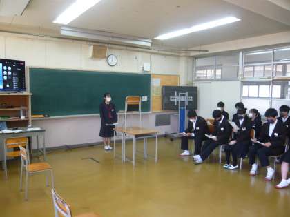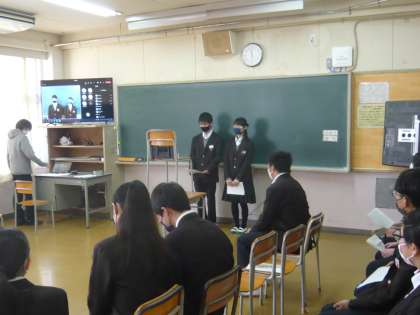 「3年生からのバトン」ということで、3年各クラス代表からのメッセージ、1・2年生の学年代表による送ることばなどがありました。