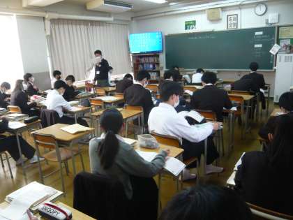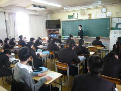 4限、2年1組は英語、単語の練習をしていました。2年2組は数学、確率です。