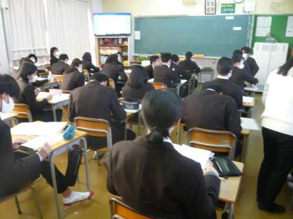 4限、2年生も学級特活です。1年間の振り返り等を書いています。