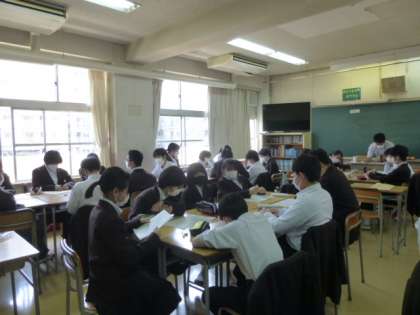 今日の5時間目は、人権学習を行っていました。自分にとって大切だと思う権利について考え、班で意見を交流しています。選んだ項目は人それぞれですが、選んだ理由について最近の世界情勢を踏まえて、自分の考えを熱く語っている人もいましたよ。仲間のいろんな考え方を知って、自分を高めていきましょう。