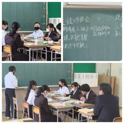 今日、2日と6日の二日間の予定で生徒会役員は研修会があります。谷川中について意見交換することを通して、めざす学校を見つけていきます。