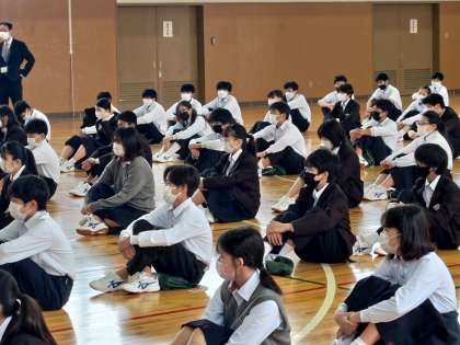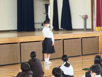 今朝は2年生が学年集会を開きました。生徒の進行で集会は始まります。学年代表と学年主任の先生が話しをしました。学年代表はしっかりしたことを学年の仲間に伝えることができていました。連休明けのこのタイミングで学年で集会を持つことも大切なことです。