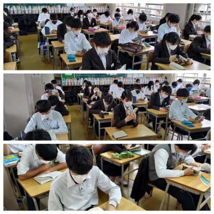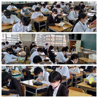 写真は2年生の朝の読書活動の様子です。一日の学校生活は読書でスタートします。