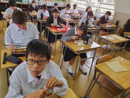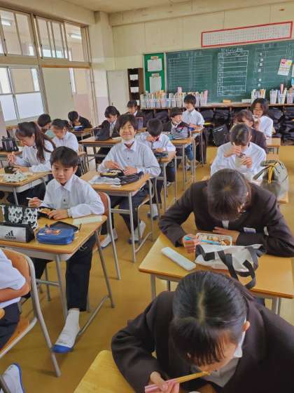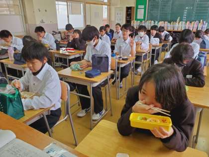 1年生は校外学習を予定していた関係で、本日は給食の代わりにお弁当を食べています。