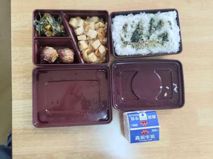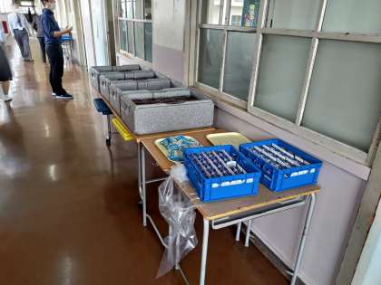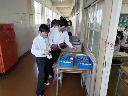 給食です。3年1組にお邪魔しました。配膳の様子です。