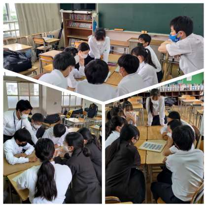 放課後は各クラスで班長会を行っています。新しい班編成を皆で話し合っていました。担任の先生も加わって、居心地の良いクラス作りに一所懸命です。