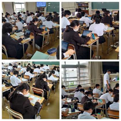 授業力向上の為に教員相互で授業見学をして意見交流をする授業力向上研修の期間に入りました。一年生の英語の授業を参観しました。