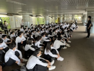 ディズニーランドに入る前の確認をしています。いよいよ体験です。