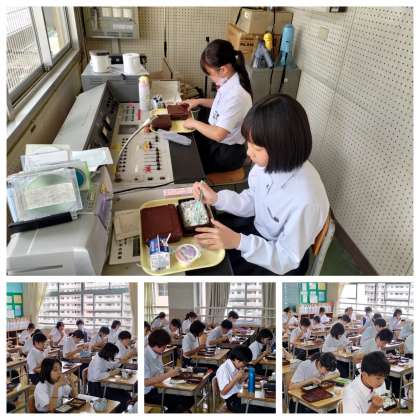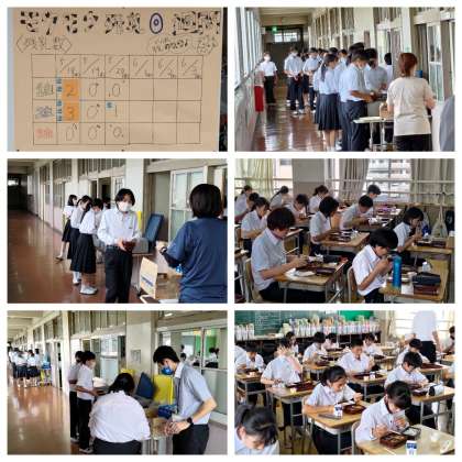 教室での給食の様子です。牛乳の飲み残し無しのキャンペーン中です。放送担当の委員の二人も頑張ってくれていました。