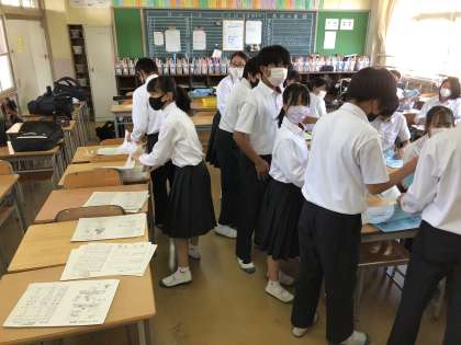 本日放課後、各クラスの学級委員と班長が集まり、宿泊学習のしおり綴じを行いました。プリントを重ねる係、折る係、ホッチキスでとめる係に分かれ、みんなで協力しながら、短時間で宿泊学習のしおりを完成させることができました。