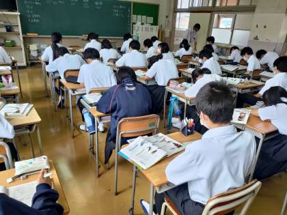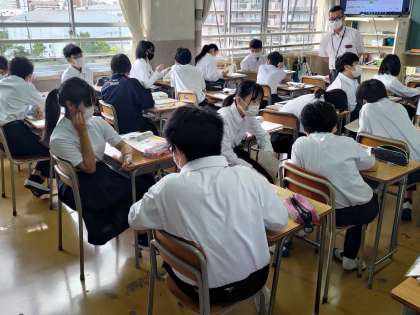 1年生の理科の授業を参観しました。せきつい動物の種類と特徴等についての学習でした。授業中の指示の際、しっかり注目をすること等、学習内容だけでなく、学び方を伝えることにも気を配りながら授業を進めています。中学校の学習では、授業での学び方を身に着けることがとても大切です。