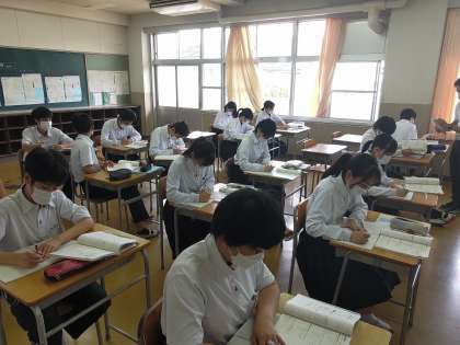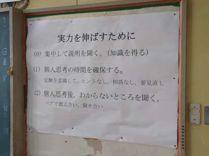 6時間目、3年生の数学、少人数授業です。前の掲示板の内容は、授業で学ぶときの基本です。