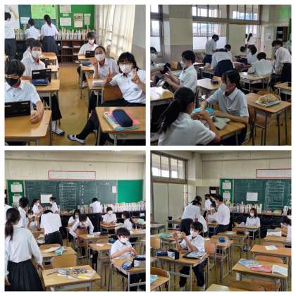リラックスしていますがチャイムが鳴る前には着席できています。(一番上の写真)