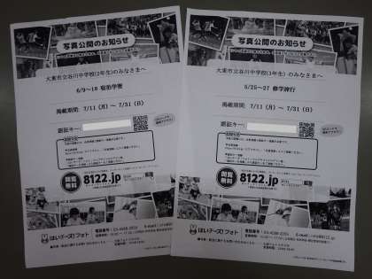 本日、2・3年生に「写真公開のお知らせ」というプリントを配布しております。