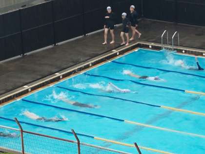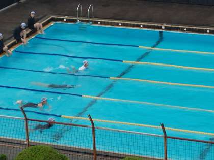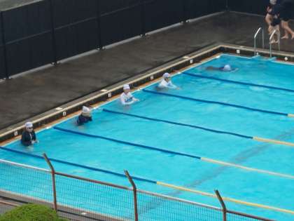 写真は2年生の水泳です。雨模様ですが実施していました。