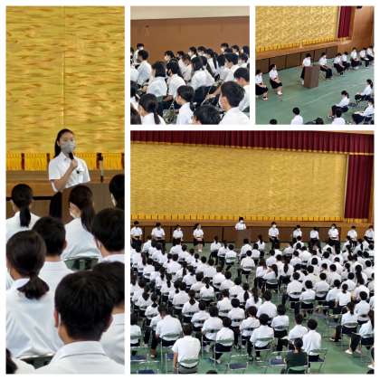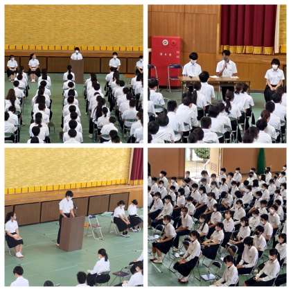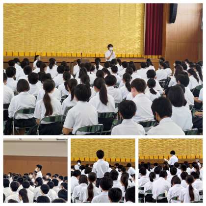 今日の午後は、前期の生徒総会を行いました。内容は大きく二部構成、第一部は各委員会の活動報告と質疑、第二部は「つながり」をテーマにしたフリートークでした。生徒会のメンバーの進行、議長の運営、各委員会の報告、そして第二部で自分の経験等を挙手して話した生徒、どれもあっぱれでした。