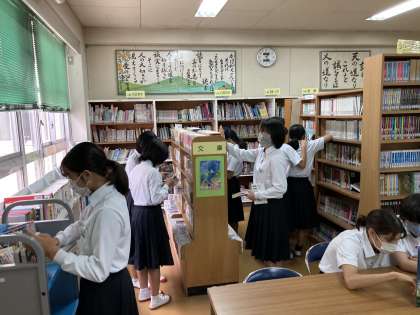 図書委員さんは、すすんで図書の整理をしています。