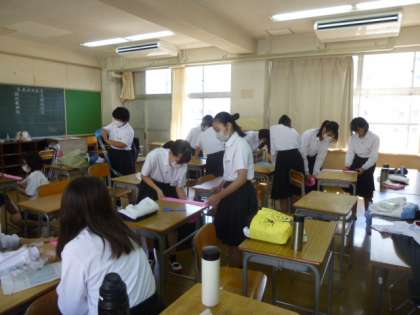 3・4時間目に学年練習を行いました。3時間目は全員リレーの入退場や並び方の確認を行い、4時間目は男子は集団行動、女子はダンスのポンポンを作りました。来週末は体育大会本番です。少しずつ完成に近づいてきているので、気持ちを1つに頑張りましょう。