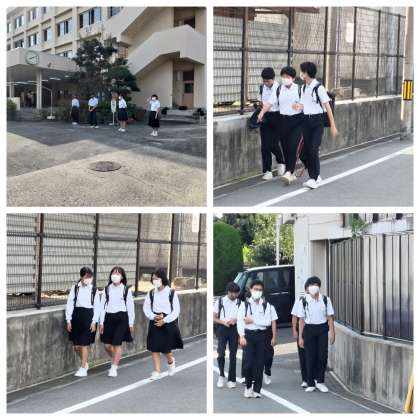 おはようございます。残暑が続いています。水筒をカバンと一緒に持って登校する生徒も多くいるようです。近づいてきた体育大会の練習には十分気を付けたいと思います。