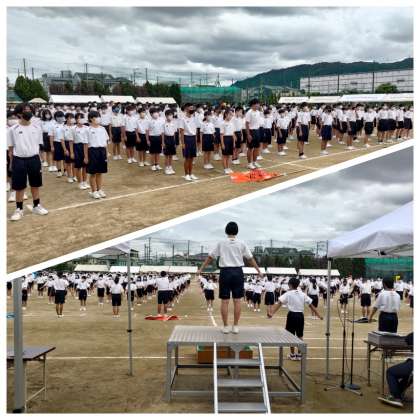 早朝から先生方で最後の調整(テント立てや放送など)を行い、予行を行いました。