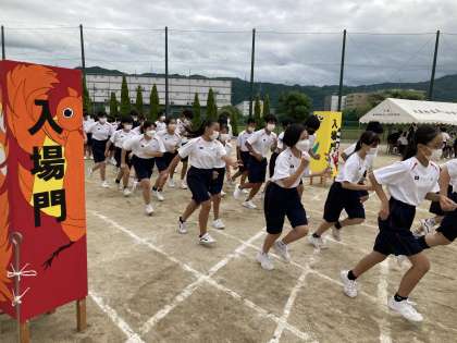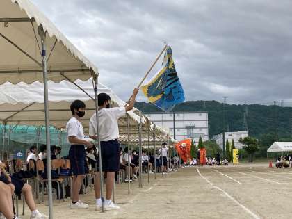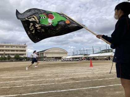 予行の様子です。応援旗がどのチームも鮮やかです。