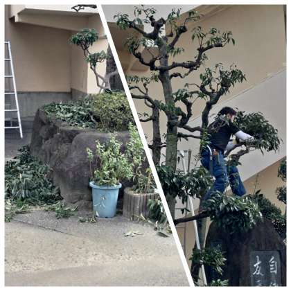 市教育委員会の営繕班の方が庭の木の剪定をして下さっています。ありがとうございます。