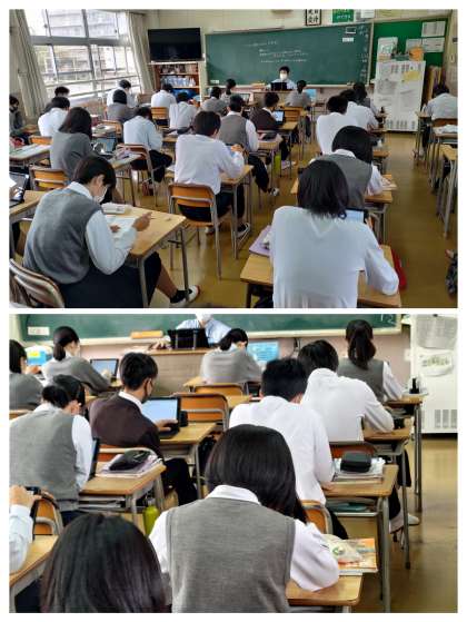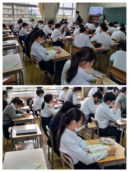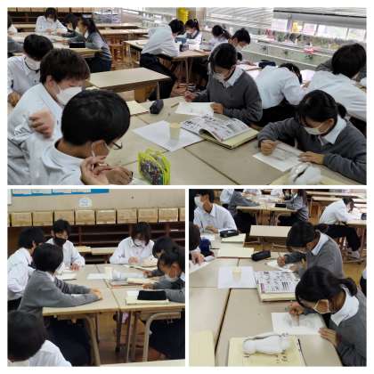1時間目、3年2組の社会、1年3組の美術、2年1組の国語です。