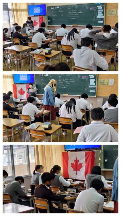 3時間目、2年3組の男子体育、3年3組の英語(分割クラス)の様子です。
