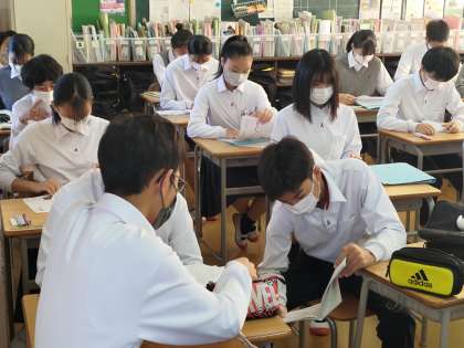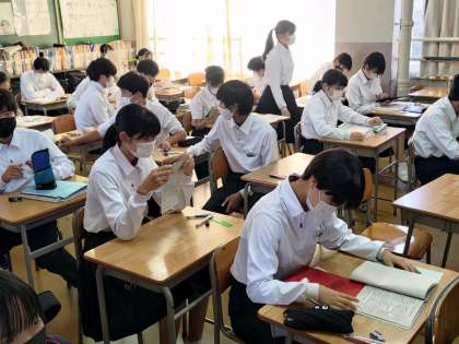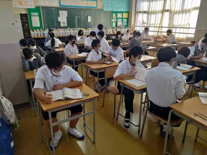 普段は朝の読書活動ですがテスト中は異なります。もうすぐ始まるテストに向け、最後の確認中の各学年1組の様子です。