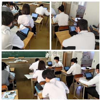 2分割した授業は、それぞれ、タブレットを使って相似の問題をしているグループと、入試問題を解いているグループでした。