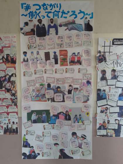 写真は2年生の掲示物です。先日の文化祭の様子についてです。「つながり」がさらに高まっていくことで居心地の良い学校を創っていってほしいと思います。